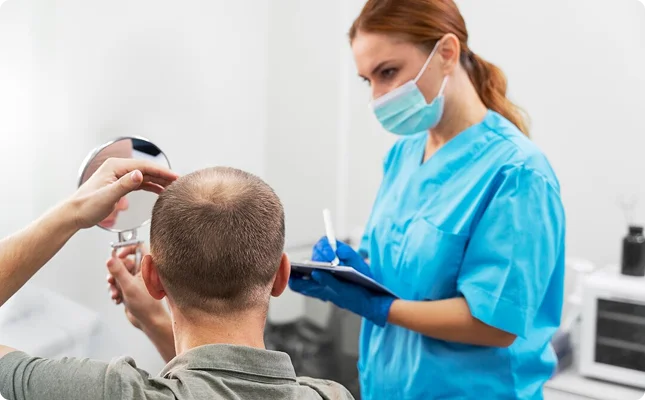 Structured aftercare and monitored progress as new hair growth develops over the following months.